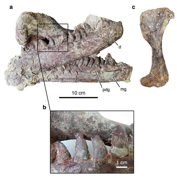 Несмотря на статус главных хищников своих экосистем, мегарапторы остаются не так хорошо изучены. Их ископаемые останки встречаются редко и, как правило, очень фрагментарны. Из-за нехватки полных скелетов ученым недостает информации об их анатомии, эволюции и образе жизни. Особенно мало известно о пищевых привычках мегарапторов, поскольку прямые доказательства их рациона — большая редкость в палеонтологической летописи. Палеонтологи из Патагонского института геологии и палеонтологии описали новый вид, получивший название Joaquinraptor casali. Результаты опубликованы в журнале Nature Communications. Останки динозавра нашли в отложениях формации Лаго-Колуэ-Уапи в аргентинской Патагонии. Их возраст оценили примерно в 68 миллионов лет, что соответствует позднему маастрихтскому веку. Это делает Joaquinraptor casali одним из последних мегарапторов, которые жили на Земле незадолго до массового вымирания, уничтожившего динозавров. Скелетная модель и найденные кости Joaquinraptor casali gen. et sp. nov. / © Lucio M. Ibiricu et.al./Nature Communications Найденный скелет, хоть и неполный, стал одним из самых цельных среди всех известных мегарапторов. Палеонтологам удалось обнаружить фрагменты черепа, нижние челюсти, кости передних и задних конечностей, а также несколько хвостовых позвонков. Анализ останков показал, что это был крупный хищник — его длина от носа до хвоста превышала семь метров, а масса составляла более 1000 килограммов. Изучение микроструктуры костей голени помогло определить возраст особи. Подсчет линий остановки роста, подобных годичным кольцам у деревьев, показал, что динозавру было не менее 19 лет. К этому возрасту он достиг половой зрелости, но, вероятно, еще не перестал расти. Кость крокодилообразной ноги и челюсть мегараптора в том виде, в котором они были найдены. / © Lucio M. Ibiricu et.al./Nature Communications 2025 Самой необычной стала находка, сделанная в челюстях хищника. Между ними находилась плечевая кость древнего крокодиломорфа — родственника современных крокодилов. На кости обнаружили следы зубов, а сама она соприкасалась с несколькими зубами динозавра. Это позволило сделать предположение, что крокодиломорф стал последней добычей Joaquinraptor casali. Новая находка стала важным дополнением к нашим знаниям о фауне Южной Америки конца мелового периода. Она подтвердила, что мегарапторы процветали и сохраняли свои гигантские размеры до самого кануна своего исчезновения.
