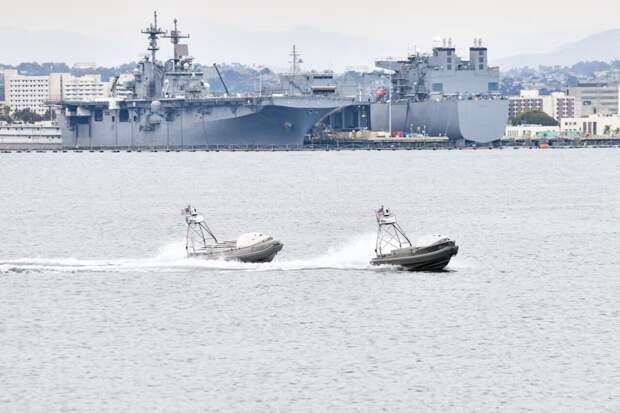 Американские безэкипажные катера / © U.S. Navy Во время демонстрации своих возможностей один из катеров неожиданно заглох, пока специалисты пытались устранить сбой в программном обеспечении. В этот момент другой беспилотник врезался в правый борт дрона, стоявшего на холостом ходу, перескочил через его палубу и упал обратно в воду.