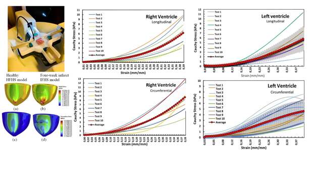 Для исследования деформационных свойств мягких тканей сердца часто используют образцы, взятые у овец или крупного рогатого скота из-за их анатомического и биомеханического сходства с тканями человека. Однако в основном исследователями проводятся лишь одноосные испытания, то есть ученые рассматривают биомеханическое поведение тканей под нагрузкой лишь в одном направлении, в то время как в реальных физиологических условиях сердце деформируется более сложным образом. Ученые Южной Африки совместно с коллегами из Пермского Политеха провели комплексные экспериментальные исследования механического поведения миокарда левого и правого желудочков, играющего важную роль при сокращении сердца, а также перегородки между ними с помощью двухосных испытаний на растяжение. Исследование помогло оценить значения характеристик жесткости/податливости мягких тканей при растяжении в двух направлениях. Для экспериментов исследователи отобрали десять сердец овец. Сначала их помещали в раствор хлорида натрия, нагретый до температуры 37°С, и вырезали квадратные образцы размером 18 на 18 миллиметров из левого и правого желудочков и межжелудочковой перегородки. Во время испытания каждый образец подвергали растяжению в продольном и окружном направлениях до деформации на 40%, имитируя естественные нагрузки во время работы сердца. Таким образом, удалось измерить жесткость тканей, их способность к деформации и выявить зависимость их механических свойств от направления нагрузки. – Мы выявили значительные различия в биомеханическом отклике образцов в продольном и окружном направлениях. Самые высокие значения модуля Юнга (физическая величина, характеризующая способность материала сопротивляться нагрузке) в исследуемых направлениях были получены для образцов ткани миокарда левого желудочка, что показывает его способность выдерживать бóльшую нагрузку. С другой стороны, миокард правого желудочка была выявлена бóльшая накопленная энергия деформации. У тканей межжелудочковой перегородки наблюдались промежуточные свойства – меньшая жесткость и более низкая накопленная энергия деформации в сравнении с показателями левого и правого желудочков. Это связано со структурными особенностями строения (в частности, влияние ориентации коллагеновых волокон) данных элементов сердца. Работа по исследованию механических свойств имеет решающее значение для разработки цифровых двойников сердца, – рассказывает Алексей Кучумов, заведующий лабораторией биожидкостей ПНИПУ, доктор физико-математических наук. Комплексное исследование ученых Пермского политеха и Южной Африки открывает новые возможности в изучении сердечно-сосудистых заболеваний и разработке новых цифровых двойников для краткосрочного и долгосрочного прогнозирования методов их лечения.