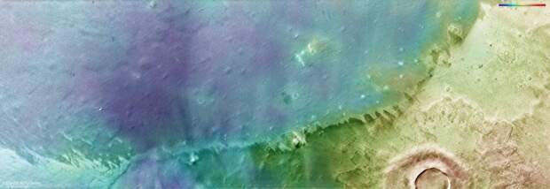 Равнина Аркадия / © ESA / DLR / FU Berlin По крайне мере именно этот относительно плоский рельеф равнины представляется перспективным местом для будущих пилотируемых миссий и строительства первой марсианской колонии компании SpaceX. Топография равнины Аркадия / © ESA / DLR / FU Berlin