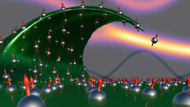 Магнетизм таких материалов, как железо или никель, возникает из-за «крошечных магнитов», связанных с их атомами, — так называемых атомных спинов. В магнитных материалах спины соседних атомов движутся согласованно, создавая коллективные колебания. Эти колебания известны как спиновые волны, или магноны.