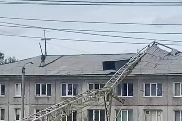 В Бурятии подъемный кран рухнул на жилой дом и попал на видео
