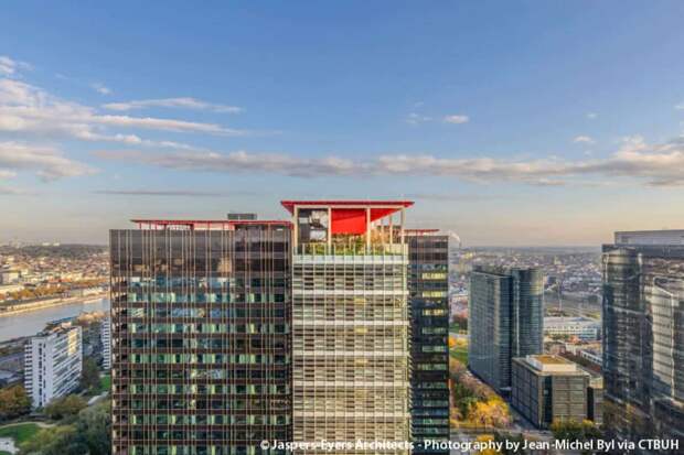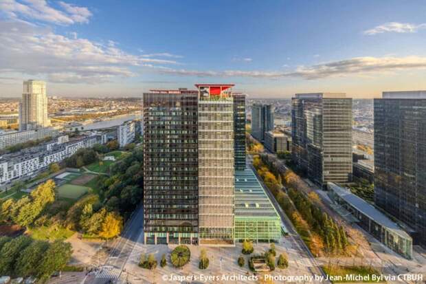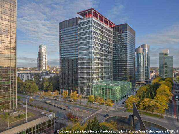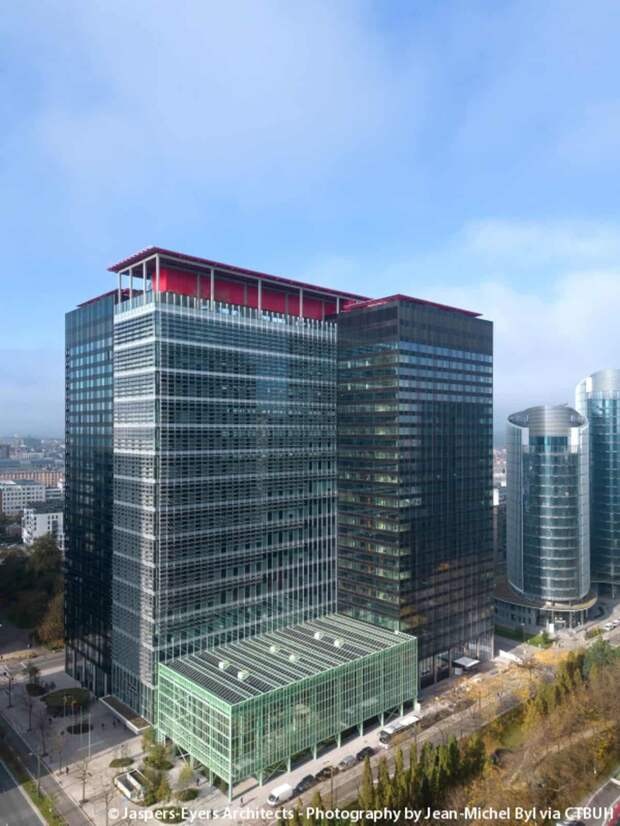 ZIN in No(o)rd / © Jaspers-Eyers Architects — Photography by Philippe Van Gelooven Официальное объявление состоялось на ежегодной международной конференции Совета в Торонто (Канада). Ведущие архитекторы, инженеры и урбанисты со всего мира выбрали среди заявок из 24 стран, проект ZIN in No(o)rd высотой 111 метров за преобразование офисного комплекса 1970-х годов в вертикальную экосистему смешанного назначения, объединяющую офисы, жилые квартиры, гостиничные и общественные пространства.