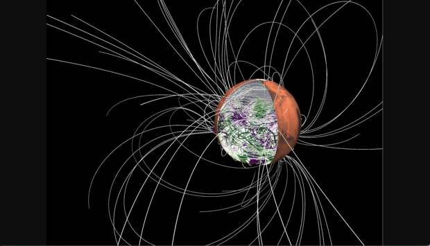 Четыре миллиарда лет назад Красная планета обладала мощным магнитным полем, которое защищало ее плотную атмосферу от губительного воздействия солнечного ветра. Однако по мере остывания ядра и прекращения геологической активности от магнитосферы остались лишь «отпечатки» в коре, разбросанные по всей поверхности планеты, но особенно заметные в южном полушарии.