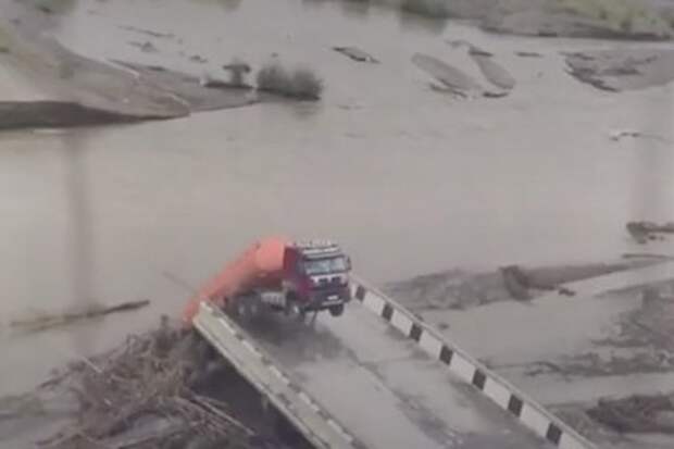Автомобильный мост с грузовиком снесло потоком воды в российском регионе
