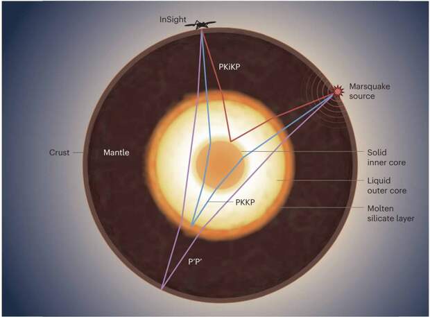 В 2023 году астрономы впервые зарегистрировали сейсмические волны, прошедшие через ядро Марса. Их уловил посадочный модуль InSight. У волн было два источника: марсотрясение и удар метеорита. Изучив их характеристики, ученые сделали вывод, что ядро у Марса полностью жидкое с большим количеством легких элементов, в частности серы и кислорода.
