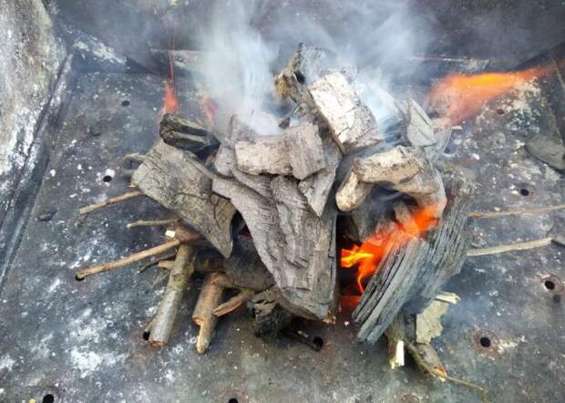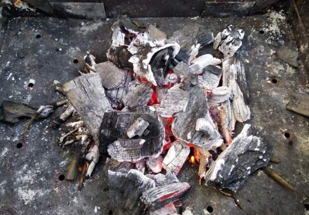 Первый этап пройден, угли покраснели и появился хороший жар!