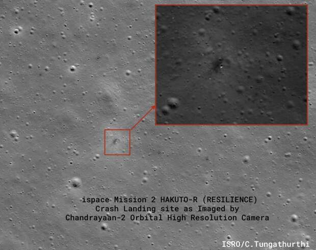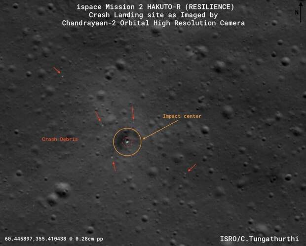 Место крушения японского модуля Resilience на Луне / © ISRO Напомним: лунный модуль Resilience японской компании ispace разбился во время посадки 5 июня 2025 года. В ходе последующего расследования инженеры установили, что причиной неудачи стал лазерный дальномер, который столкнулся с аппаратной проблемой и вовремя не выдал данные о высоте.