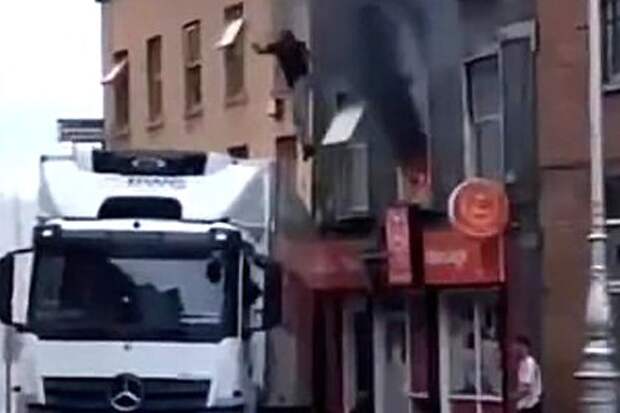 Мужчина спасся из пожара благодаря грузовику и попал на видео
