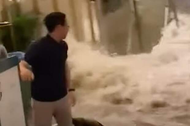 Поток воды ворвался в отель в Гонконге, сбил с ног постояльцев и попал на видео