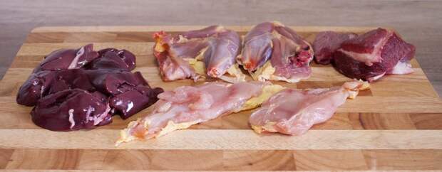 От нее берем лишь ножки и грудку, еще берем полкило печени индейки и немного мяса, в моем случае говядина ( все это на 600 - 700 гр. риса )Отличный цвет мяса курицы, т.к. ее правильно кормили, растили и содержали