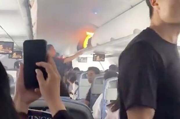 Пауэрбанк загорелся в ручной клади пассажира самолета и попал на видео