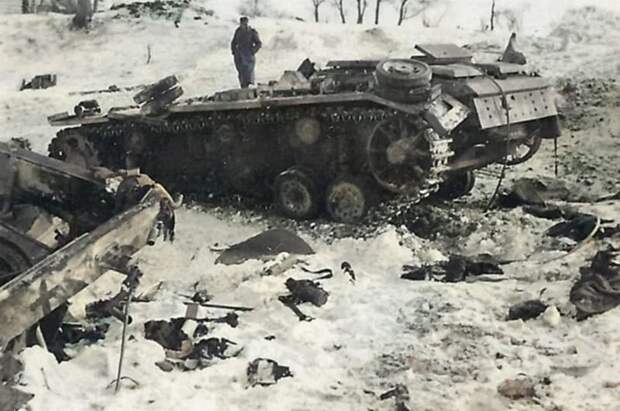 Немцы в основном окружили советские войска на западном направлении, отчего защищать столицу какое-то время было некому. Потратив недели на ликвидацию окруженных, основные силы наступающих обнаружили, что за это время из глубины были подброшены советские резервы, и фронт надо прорывать снова. В октябре и с середины ноября немцы предприняли две попытки такого рода. Счетверенный «Максим» на крыше гостиницы «Москва» в октябре 1941 года. Красная армия в конце года в сравнении с той же армией летом 1941 года откровенно нуждалась во всем. Потери в зенитных средствах были минимальны, но и их не хватало, отчего ПВО столицы иногда выглядело вот так, то есть довольно архаично для 1941 года / © Wikimedia Commons Но на этот раз на западном направлении главным был Жуков, который заранее стягивал войска туда, куда наступал противник, поэтому крупные окружения немцам уже не удавались — а продвижение вперед стало стоить довольно дорого. Карта немецких ударов на Москву в октябре-ноябре 1941 года / © Wikimedia Commons И тем не менее, сколько бы резервов СССР ни подбрасывал из глубины, даже к 5 декабря 1941 года людей на московском направлении у него было меньше, чем 30 сентября, перед началом немецкого наступления на Москву. Удалось собрать только 1,02 миллиона человек, почти на 20 процентов меньше, чем было на 30 сентября. Контрнаступление с силами, равными вражеским? В советское время было принято оценивать силы немцев на 5 декабря в 1,9 миллиона человек, что, бесспорно, неверно. Получали ее, умножая число их 78 дивизий на их ожидаемую численность, но на практике за время боев многие из них потеряли столько сил, что реально немцев было около миллиона. Советское превосходство в силах было в лучшем случае равным 10 процентам. Один из образцов эрзац-вооружения Красной армии во время битвы за Москву: 57-мм самоходка ЗИС-З0 на базе гусеничного мини-тягача «Комсомолец». При выстреле пушку немилосердно раскачивало, потому что центр ее тяжести был недопустимо высоко. Но в конце 1941 года выбирать не приходилось: стреляли из того, что было / © Wikimedia Commons Особенно тяжелой для Красной армии была ситуация с техникой. Количество винтовок, пулеметов и радиостанций к концу 1941 года в сравнении с 22 июня упало в два с лишним раза, противотанковых пушек — почти втрое, танков в действующей армии — в семь с лишним раз, самолетов — вдвое. Даже число тяжелых и средних танков, несмотря на упор на их прозводстве в работе военных заводов, в нашей армии не выросло: их потери полностью «съедали» все пополнение. За это же время численность людей в действующей армии выросла, то есть ее реальная вооруженность на одного бойца снизилась еще серьезней. Однако оружие, при всей его необходимости — вещь не самая важная. Самая важная — подготовленные люди, и вот здесь у СССР к декабрю 1941 года случилась настоящая катастрофа. Наши безвозвратные потери к началу битвы за Москву достигли примерно 100 процентов от численности действующей армии к началу войны, а у немцев — менее 23 процентов. Это значило, что более трех четвертей немецкой армии составляли очень опытные солдаты, с многомесячным опытом боев на самом напряженном фронте Второй мировой. А с советской стороны те бойцы, которыми укомплектовали войска к декабрю, еще 22 июня 1941 года вообще не были военнослужащими. Качественно учить их в военное время было некому, описания советс
