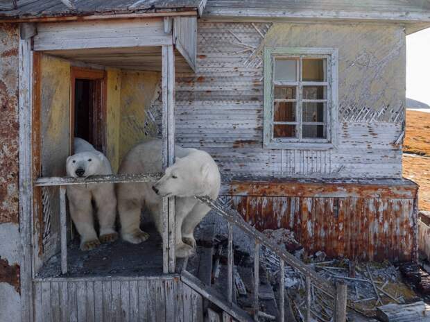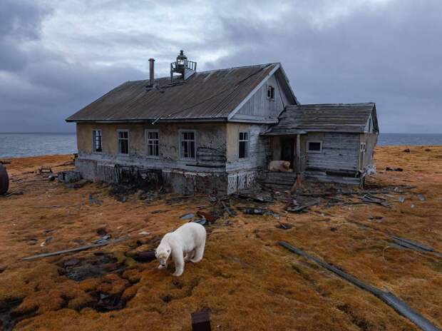 Медведи на заброшенной исследовательской станции на острове Колючин / © Vadim Makhorov, Telegram Медведи поселились на пустующей исследовательской станции на острове Колючин. Станция была заброшена в 1990-х годах, после распада Советского Союза. Медведей заснял фотограф Вадим Махоров с судна «Профессор Хромов» во время путешествия на остров Врангеля.