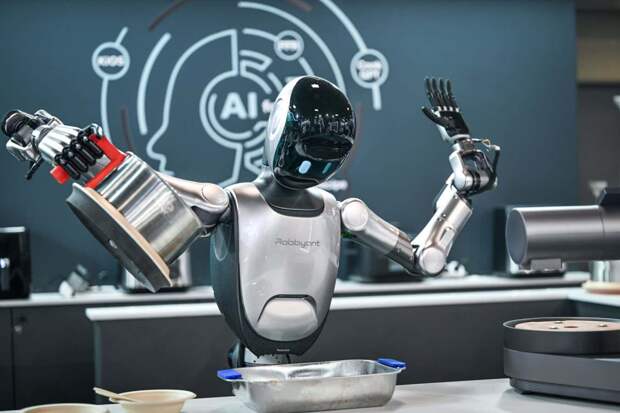 Робот R1 во время готовки / © Artur Widak / NurPhoto, Getty Images Гуманоидного робота R1 создала компания Robbyant, принадлежащая китайскому технологическому гиганту Ant Group. Этот робот появился на технологической выставке IFA 2025 в Берлине. Там он продемонстрировал свои навыки работы на кухне. В неспешном темпе робот приготовил креветки.