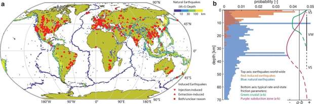В тех краях расположено крупное газовое месторождение Гронинген, его разрабатывают с 1960-х. Сейсмологи пришли к выводу, что именно это спровоцировало землетрясение: за десятки лет добычи давление в подземном резервуаре упало настолько, что это привело к перераспределению напряжений. В то же время было не очень понятно, как все-таки это землетрясение могло произойти даже в результате искусственно вызванных изменений. После анализа образцов местных пород выяснилось, что у них есть, казалось бы, очень полезное с этой точки зрения свойство — они «скоростно усиливающиеся» (velocity-strengthening). Это значит, что при увеличении скорости смещения литосферных плит с такими породами сила трения между ними возрастает, а дальнейшее движение, по сути, блокируется. В итоге землетрясение фактически становится невозможным. Глобальное распределение естественной (обозначена синим цветом) и искусственно вызванной (обозначена красным) сейсмичности / © Meng Li et al, 2025 Исследователи из Утрехтского университета (Нидерланды) предложили возможное объяснение этому парадоксу. В недавней статье для издания Nature Communications они выразили мнение, что в случае Гронингена и других «невозможных» техногенных землетрясений они произошли на местах «заживших» разломов. Как рассказали геологи, в земной коре скрываются древние трещины, которые за последние миллионы лет не испытывали никаких «беспокойств» и за время столь долгого тектонического бездействия «склеились», то есть контакты между разделенными когда-то породами стали довольно прочными. Из-за этого разлом сильнее сопротивляется давлению, и вместо того, чтобы мягко и постепенно деформироваться, породы до последнего упираются, пока в конце концов не «разрываются» с грохотом от накопленного напряжения. Впрочем, есть и сравнительно оптимистичная деталь: компьютерное моделирование показало, что подобным образом неожиданное землетрясение на месте «заживления» разлома чаще всего происходит лишь однажды. Потом он снова становится «открытой раной», то есть породы возвращаются к своей изначальной податливости и смещаются под давлением размеренно. Это означает, что стоит внимательнее отслеживать подобные «стабильные» и еще не проявившие себя разломы, особенно если над ними идет активная промышленная деятельность. Ученые советуют пристально наблюдать прежде всего за песчаником, известняком и доломитом — такие породы быстро «заживают».