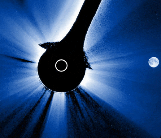 Как и любой коронограф, он использует специальный диск, закрывающий солнечный диск, чтобы ученые могли изучать слабое свечение внешней атмосферы Солнца — короны. Но в этот раз именно Луна вклинилась между прибором и Солнцем, и CCOR-1 на короткое время стал свидетелем настоящего космического затмения. © NOAA Интересно, что полученное изображение выглядело довольно странно: исчезла не только солнечная поверхность, но и вся корона. Это не была космическая аномалия, а следствие обработки данных. «Обычно каждое изображение, получаемое CCOR-1, — это комбинация короны и яркого солнечного света, рассеянного в телескопе, — объяснил Билл Томпсон из Центра космических полетов имени Годдарда (NASA) в интервью Spaceweather — Модель рассеянного света вычитается, чтобы показать корону. Но во время затмения рассеянный свет исчез, а программа продолжила вычитать его, как будто он все еще был. В итоге исчезло слишком много». Поскольку CCOR-1 вращается вокруг Земли, Луна время от времени может заслонять Солнце с его точки зрения. Для коронографов, находящихся дальше в космосе — например, обсерватории SOHO в точке Лагранжа L1, — это невозможно: Луна никогда не попадет в их поле зрения. По всей видимости, это первый случай, когда космический коронограф запечатлел естественное солнечное затмение.