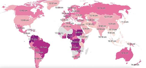 Средний размер пениса у мужчин в разных странах / © Data Pandas Специалисты портала Data Pandas, который занимается сбором статистических данных, опубликовали свежий рейтинг среднего размера пениса у мужчин в 142 странах. Результаты показали, что средняя длина эрегированного пениса у мужчин в мире составляет 13,12 сантиметра.