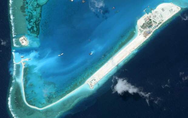 Теперь там, где ранее находились лишь небольшие бетонные доты, появляются склады боеприпасов, массивные стены и новые оборонительные сооружения. Вьетнам ускорил строительство искусственных островов на спорных рифах Спратли / © CSIS Освоение этих объектов практически гарантирует, что Вьетнам сравняется с Пекином по масштабам строительства островов, а возможно, и превзойдет его. Вьетнам ускорил строительство искусственных островов на спорных рифах Спратли / © CSIS Китай претендует практически на весь архипелаг Спратли в юго-западной части Южно-Китайского моря, несмотря на то что территории островов оспариваются еще пятью государствами: Вьетнамом, Тайванем, Малайзией, Филиппинами и Брунеем.